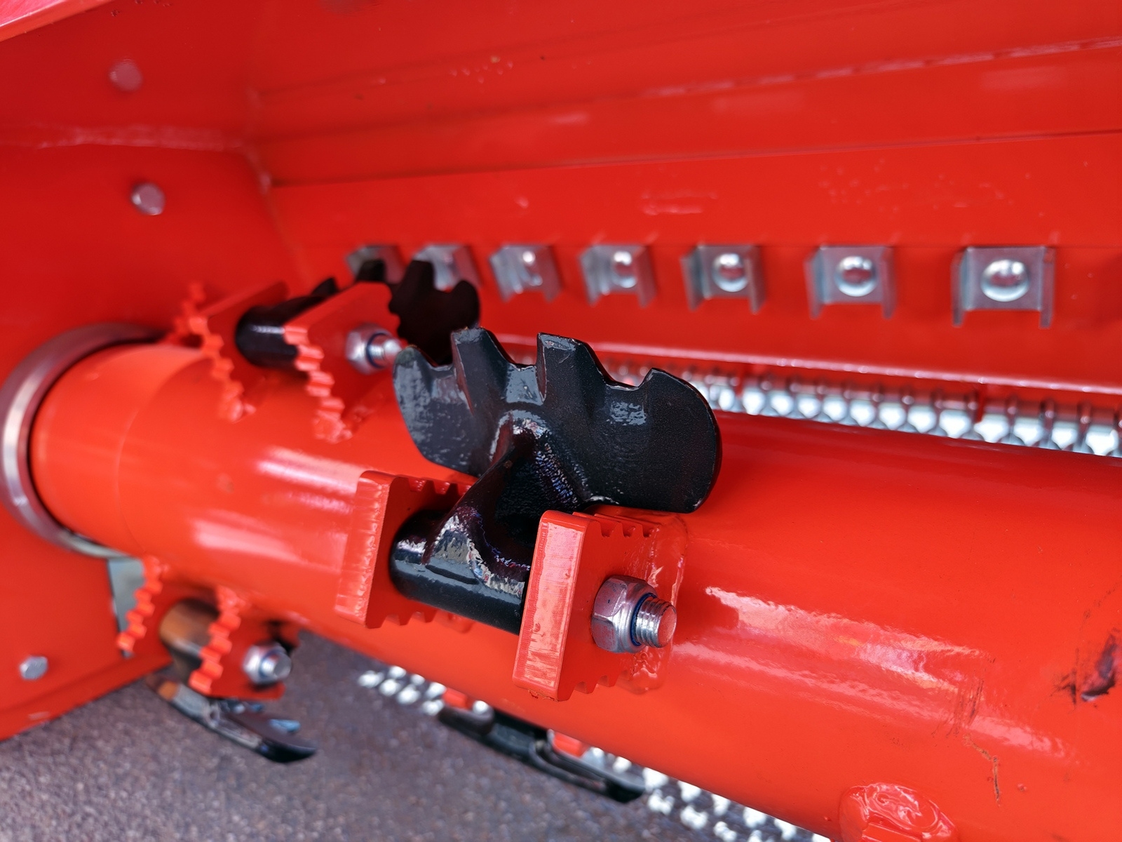 Podpery, které obsahují čapy kladív, sú přivařené k rotoru podľa dvojitej špirály. Tvar týchto podpier je ozubený, takže při řezání veľkých riadkov alebo veľkých konárov, keď sa kladivá v dôsledku prijatých úderov pohybujú späť, tieto podpery kompenzují chvění nepřítomnost rezu kladív a přispívají k rozdrveniu dřevného materiálu.