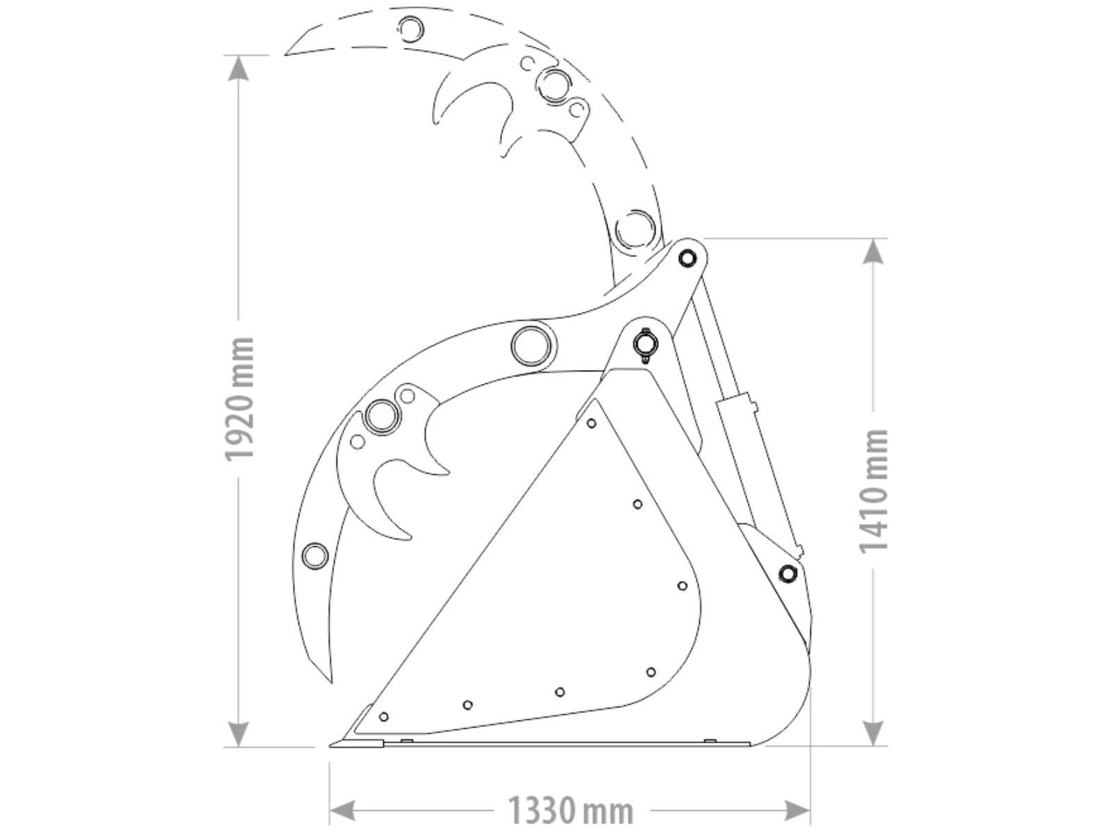 Hroty na drapáku s tloušťkou materiálu 18 mm.