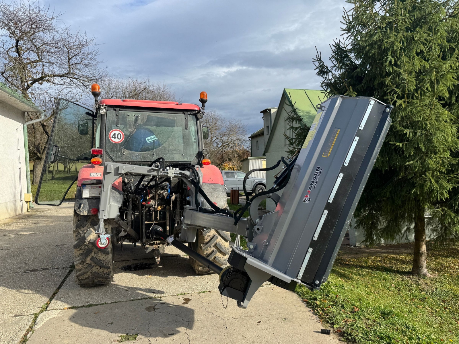 • Pokud je mulčovač maximálně na stranu, vzdálenost mezi středem traktoru a vnějším okrajem sekačky je cca 254 cm.