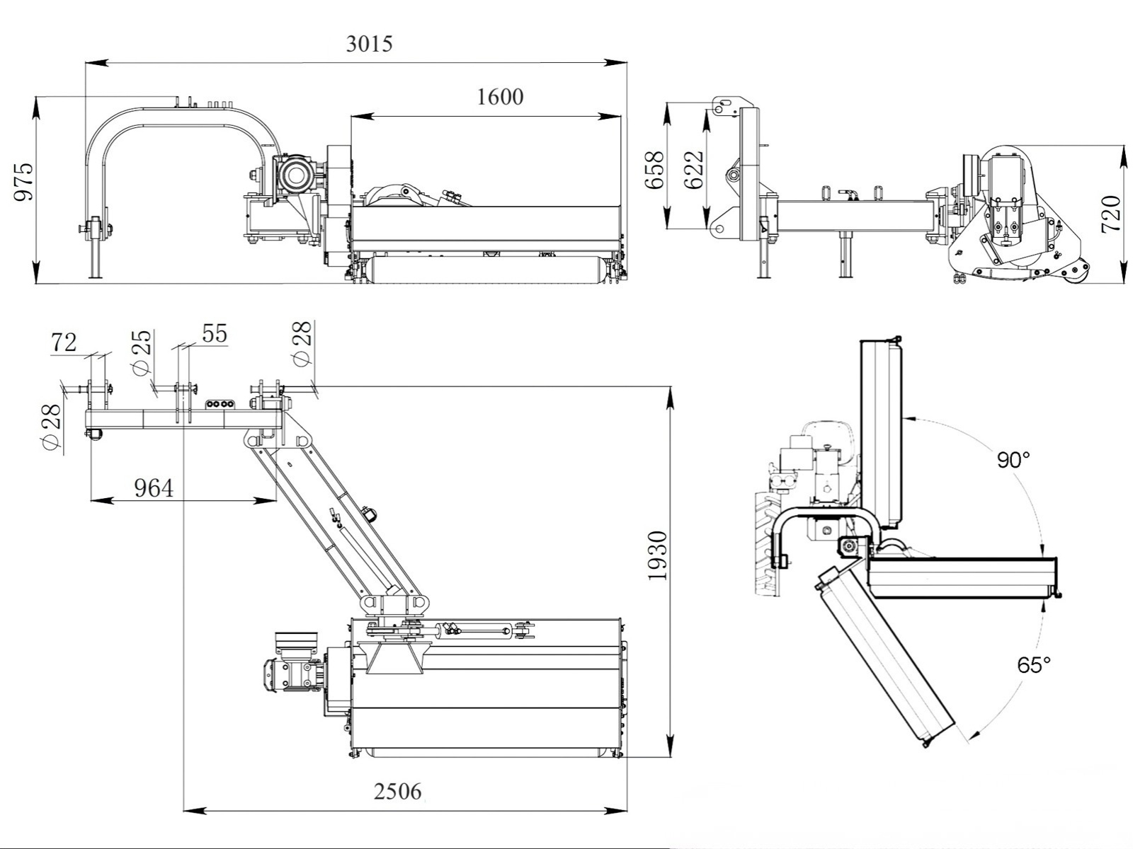 Mulčovač seká trávu, ale také drtí malé větvičky a větve o průměru 4–5 cm, proto je ideální na rákos, bodláky a dlouhou hustou trávu při cestách. Lze jej použít i na prořezávání a zastřihávání keřů, protože se dá hydraulicky nastavit vertikálně (90°) nebo směrem dolů (65°) pro břehy řek, krajnice a příkopy.