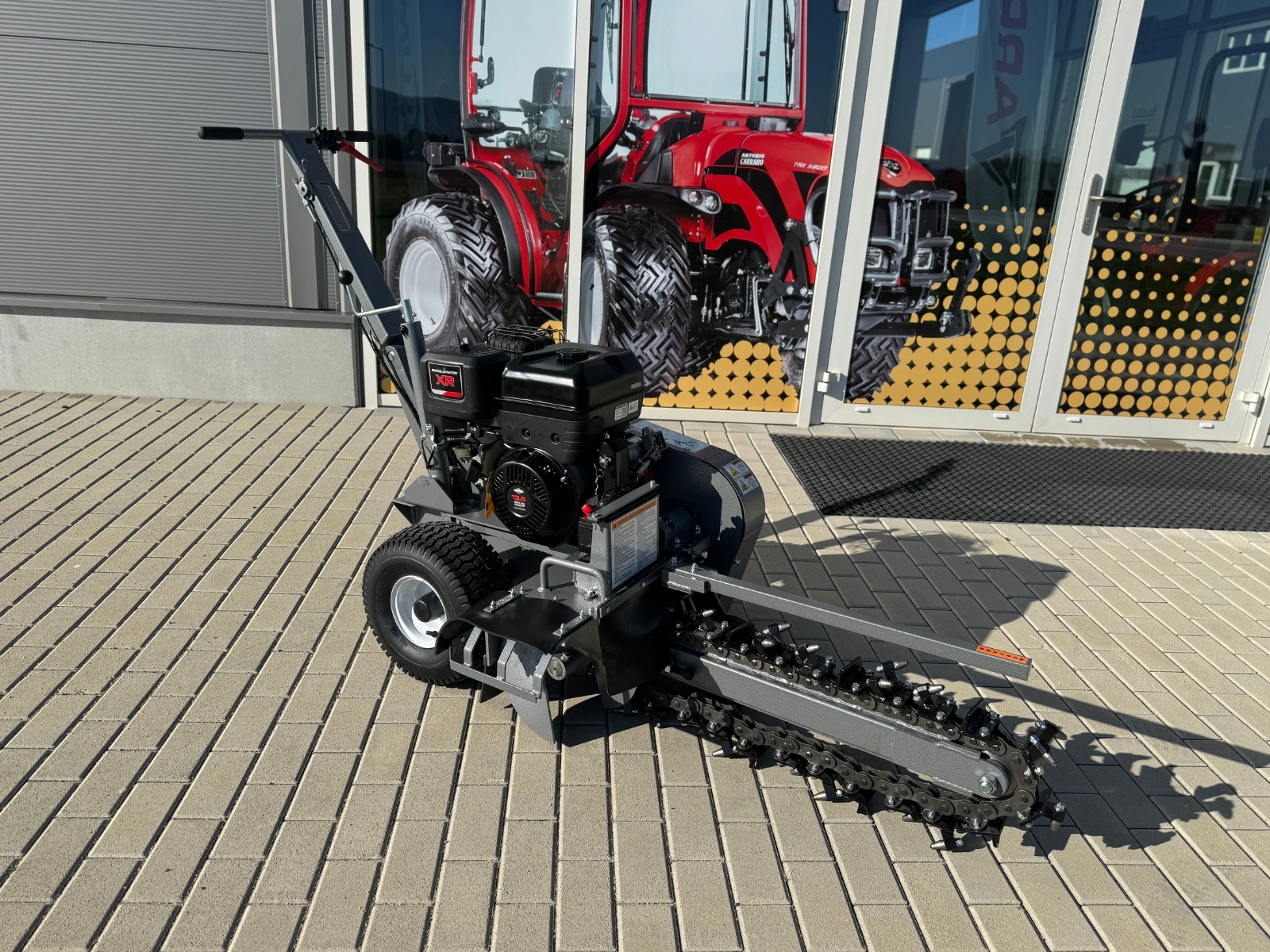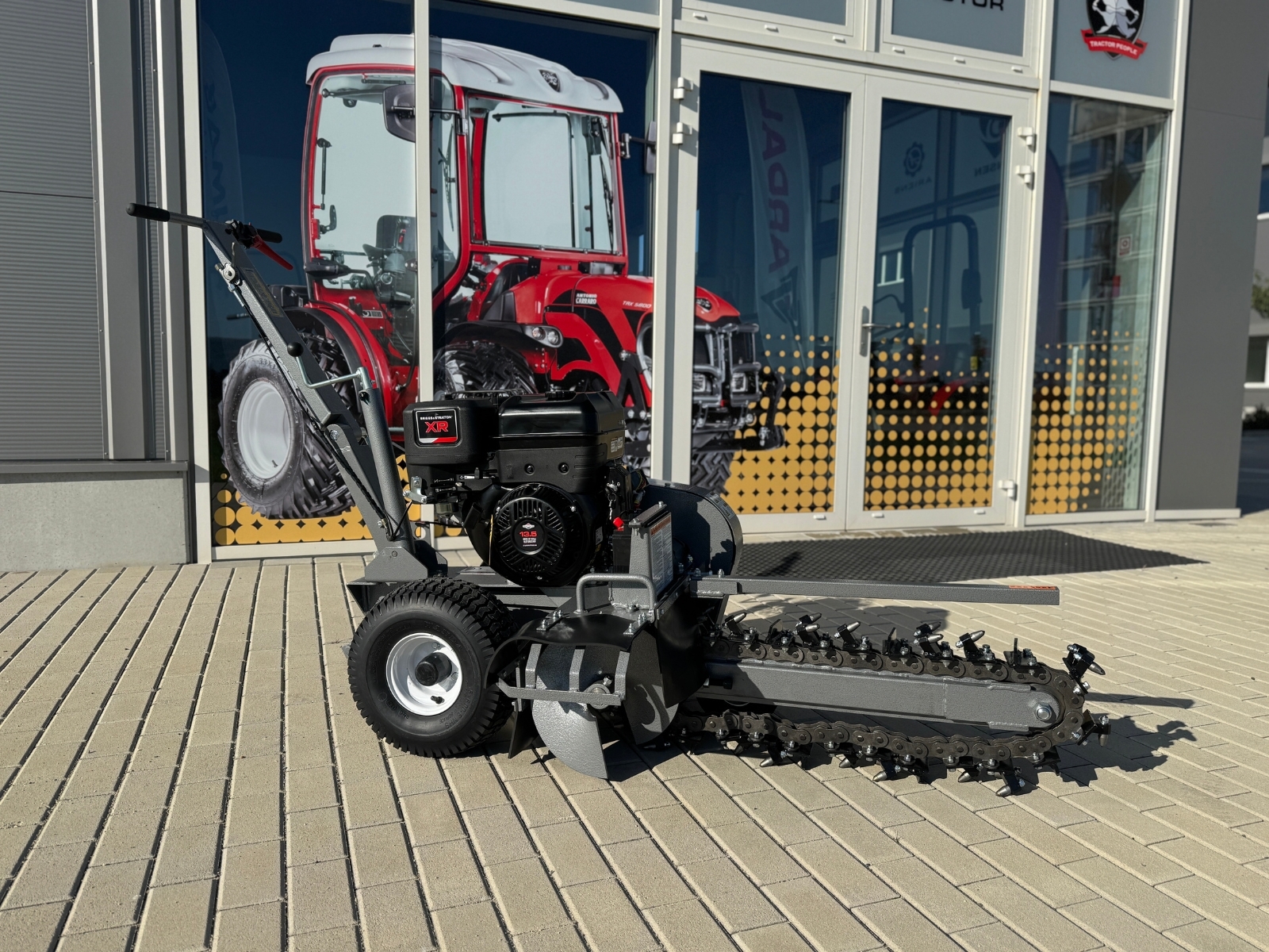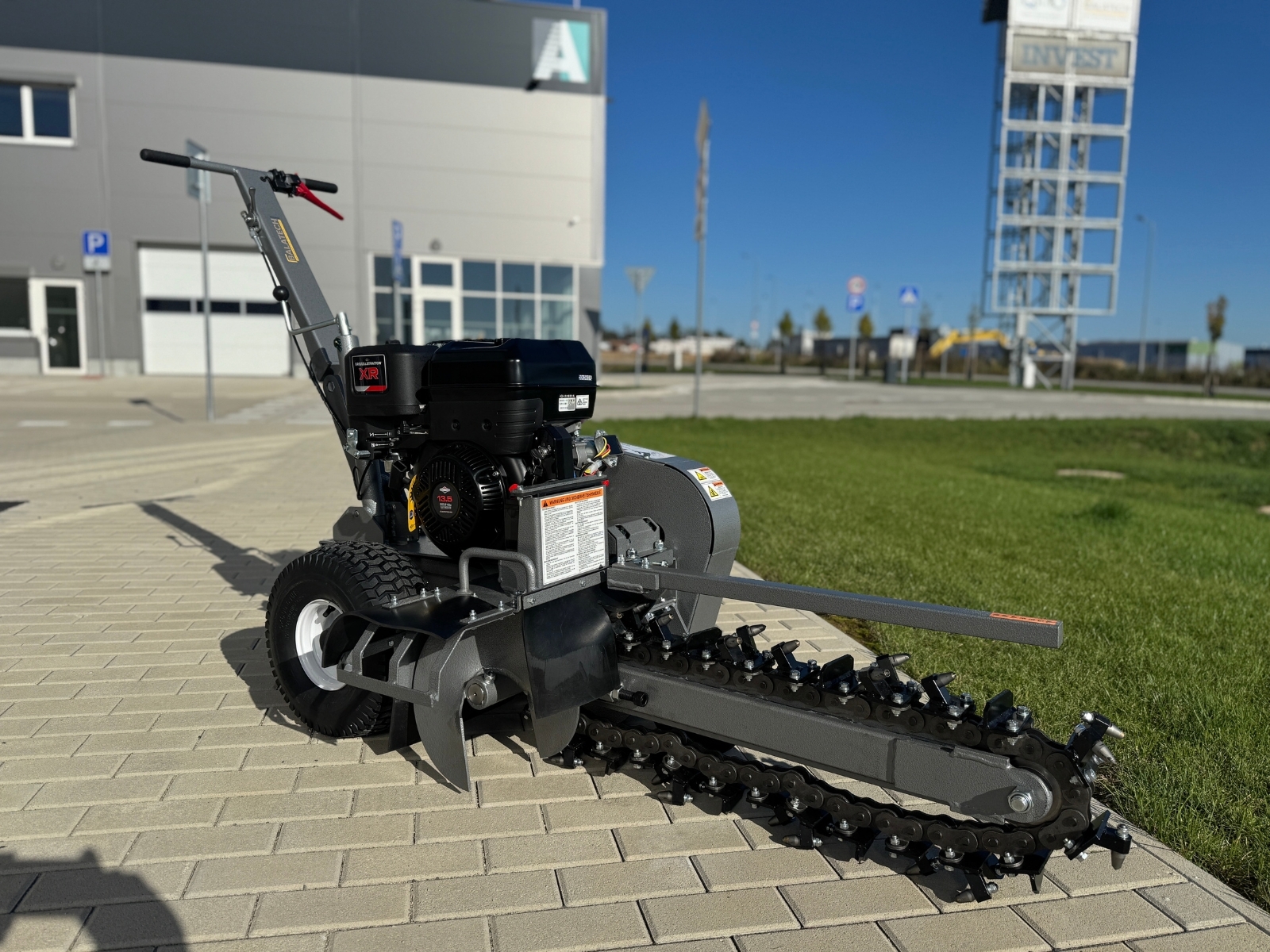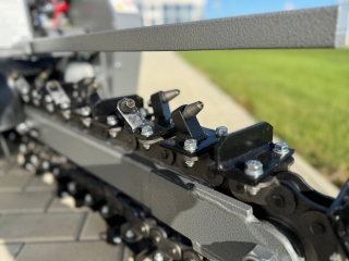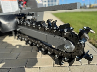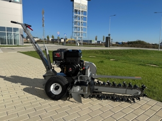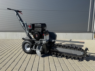 Zemní fréza GF-600pro vytváří výkopy a drážky o šířce 10 cm a hloubce 60 cm. Tento model je vybaven výkonným čtyřtaktním benzínovým motorem Briggs & Stratton o výkonu 15 HP a poskytuje potřebný výkon i v náročnějších půdních podmínkách. Použití značkového motoru zaručuje kvalitu, odolnost a spolehlivý provoz. Robustní řezný řetěz je vybaven 27 individuálně vyměnitelnými řeznými zuby z karbidové slitiny a zajišťuje vysokou účinnost. Dlouhá čepel umožňuje maximální pracovní hloubku, zatímco integrovaný šnek přepravuje vykopaný materiál do strany – pro čisté staveniště a výkopovou kapacitu až 60 m za hodinu.